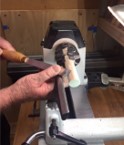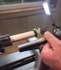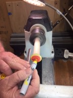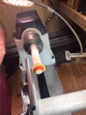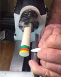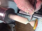 the short end of the skew chisel on the end grain of the dowel. Get