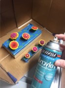 making all the flowers for the bouquet, spray a finish on them. I