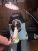 the lathe running, color the outside petals yellow. It will look best